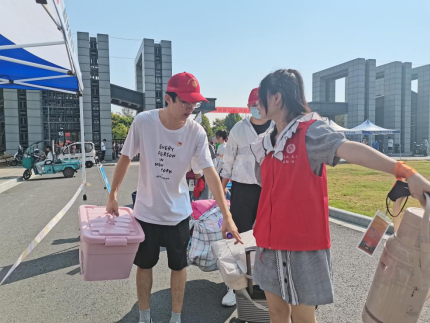 早晨7时许,党员志愿者们统一乘车前往滨湖校区,大家统一佩戴党员徽章和口罩,一下车便投入到迎新工作当中。校内公司报到处,党员志愿者们主动上前确认身份,一把接过沉甸甸的行李箱,帮忙搬运行李,指引新生按要求完成核酸检测,并全程陪同新生办理宿舍入住和教室报到等系列手续。同时,党员志愿者们还耐心地解答新生的各种疑问,叮嘱新生要提高安全防范意识,谨防各类电信诈骗,努力为初入大公司园的新生带去安全感。