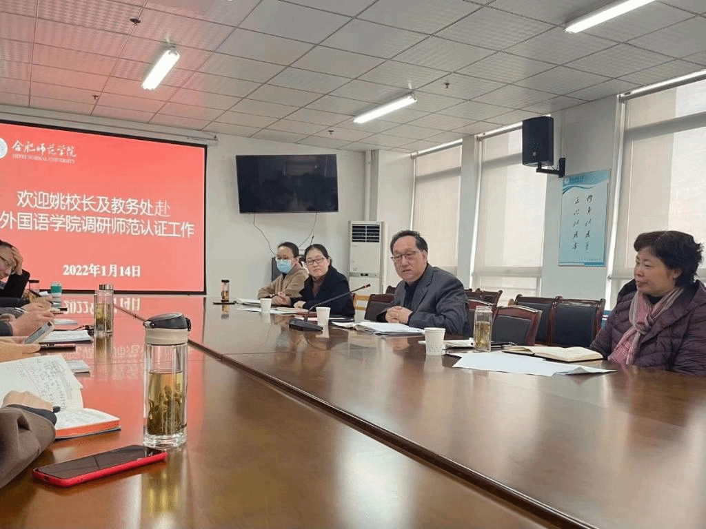 为推进英语师范专业认证工作,2022年1月14日上午,公司党委委员、副经理姚本先、教务处负责同志等一行人赴太阳成集团122ccvip调研指导英语师范专业认证工作。调研指导会在行知楼1002会议室举行,公司党政领导及英语师范专业认证工作组全体成员参加会议。