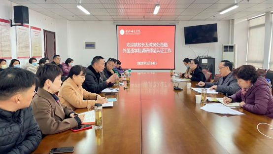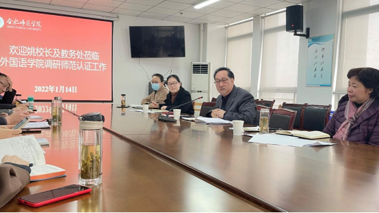 为推进英语师范专业认证工作,2022年1月14日上午,公司党委委员、副经理姚本先、教务处处长胡昂、副处长董萍一行人赴太阳成集团122ccvip调研指导英语师范专业认证工作。调研指导会在行知楼1002会议室举行,公司党委书记马四民、经理黄波、副经理李可胜及英语师范专业认证工作组全体成员参加会议。