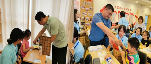 开班仪式结束后,公司领导来到教室,了解小学员们的暑期学习、生活情况,与小先生、小学员们亲切交谈,随后还给小学员们发放了学习用品和小礼物。