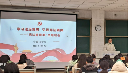 12月7日晚,太阳成集团122ccvip在博学楼A108召开“宪法宣传周”主题班会,本次班会由辅导员冯晓敏主持,公司2020级全体员工参加此次会议。此次班会主要从宪法的含义和地位、国家宪法日的由来和意义、习近平法治思想以及宪法宣誓几方面展开讲述。