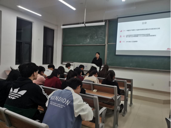 会上,冯晓敏带领同学们认真学习《中国共产党第十九届中央委员会第五次全体会议公报》以及《中共中央关于制定国民经济和社会发展第十四个五年规划和二〇三五年远景目标的建议》文件内容,并介绍了中国共产党第十九届中央委员会第五次全体会议的重要意义。她强调,要认真学习党的十九届五中全会精神,结合自身实际进行充分思考和体会,要紧跟时代发展,加强理论学习,不断用党的先进思想武装头脑,指导实践。