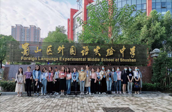 9月18日。2020级学科教学(英语)26名专业硕士研究生在班主任蒋道华老师的组织带领下,正式走入实践中学开展为期一学期的见习活动。这次见习活动主要安排在合肥两所优质中学:蜀山区外国语实验中学和合肥阳光中学。一大早,参加见习的同学们都怀着期待与喜悦的心情早早就集中在见习公司门口,等待与实践公司指导老师的见面。
