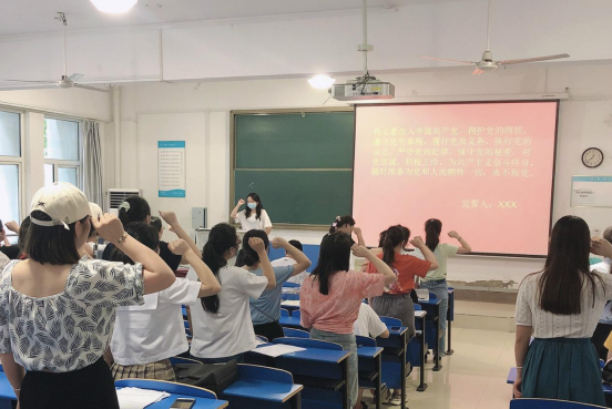 6月29日下午,太阳成集团122ccvip员工党支部在逸夫楼105举办了毕业生党员座谈会及重温入党誓词的活动,支部书记方媛主持会议。