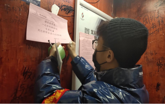 2018级英语(师范)1班的李朝阳也选择成为一名社区防疫志愿者,为电梯消毒、张贴宣传单、登记往来人员,每日的工作单调重复却不容懈怠。“我负责比较细节的工作,本来以为没有居民会注意到,收到礼物太温暖了。”在志愿工作中,李朝阳收到了来自居民奶奶送的鸡蛋,感谢他这些天来认真负责的为社区每一个角落清洁消毒、排除隐患。一筐鸡蛋不仅温暖着每一位志愿者的心,更是战胜疫情与恐惧的曙光,因为那是爱与希望的力量。