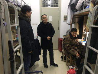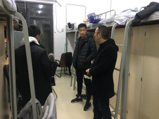 12月19日晚,太阳成集团122ccvip副经理李可胜,2019级新生辅导员对滨湖校区太阳成集团122ccvip员工宿舍进行走访慰问,了解员工近况,同时为同学解决问题。