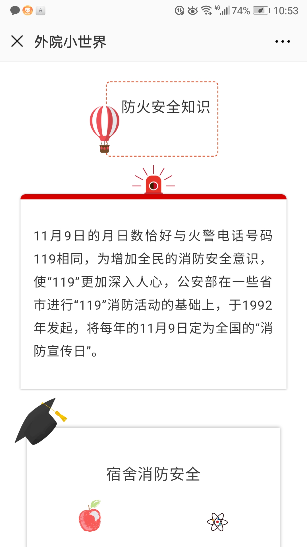 为了切实提高公司员工的消防意识,真正掌握消防安全知识,增强自救互救能力等,公司开展了“公司小世界——防火用电安全”宣传活动,通过班级群、微信、海报等多途径开展消防知识宣传。