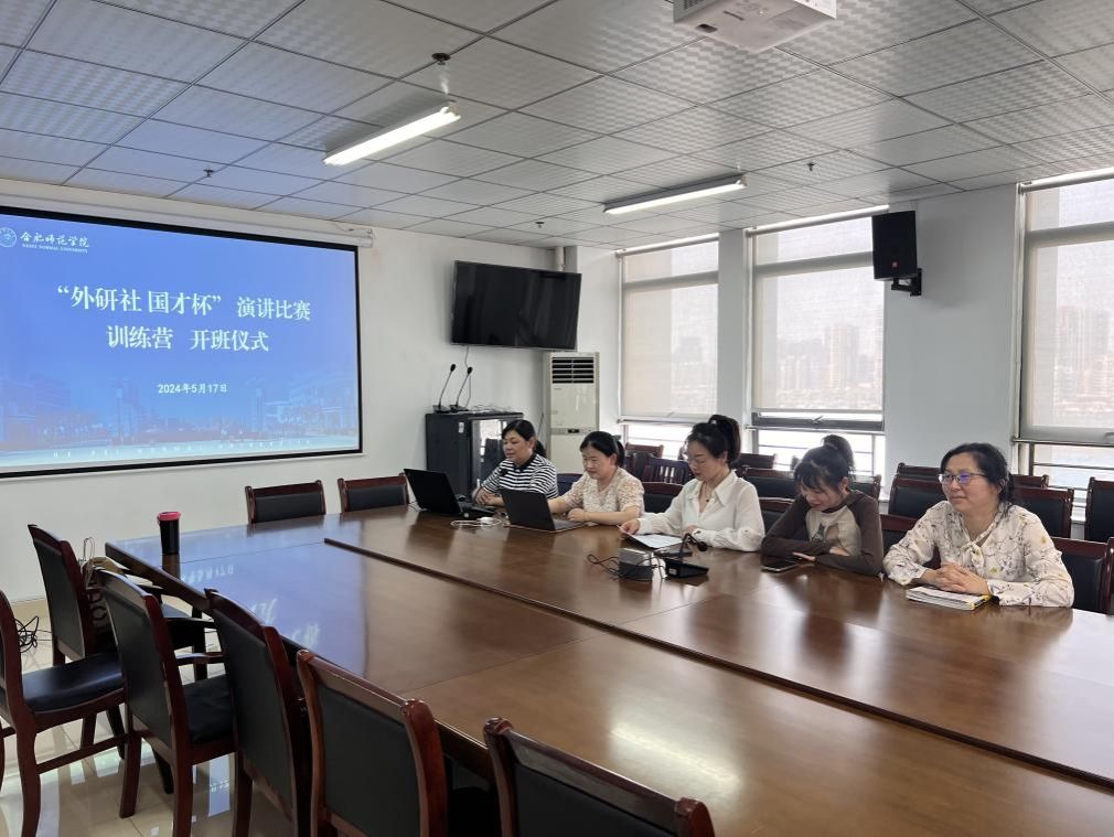 5月17日,太阳成集团122ccvip在锦绣校区行知楼1002召开了“外研社•国才杯”“理解当代中国”演讲比赛训练营开班仪式。训练营指导老师、部分参赛选手的指导老师和30余名参赛选手参加了会议。