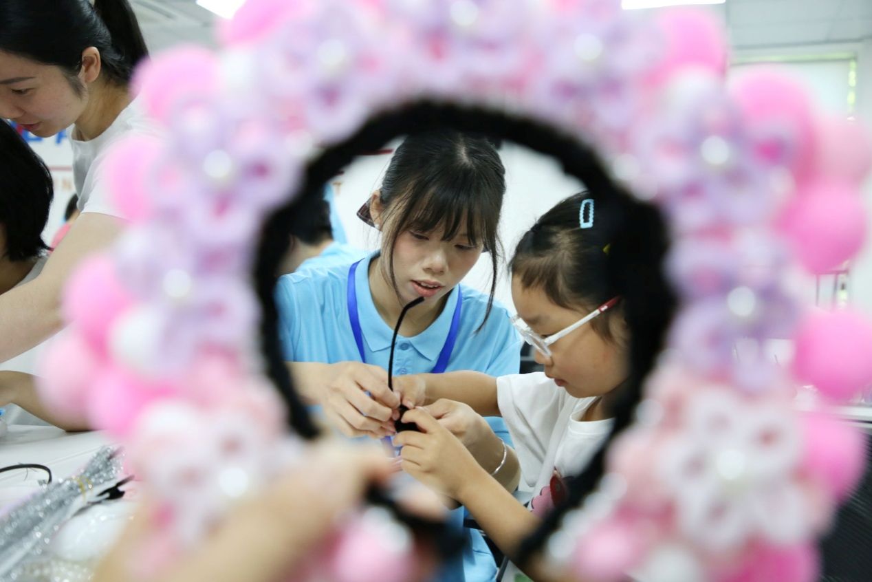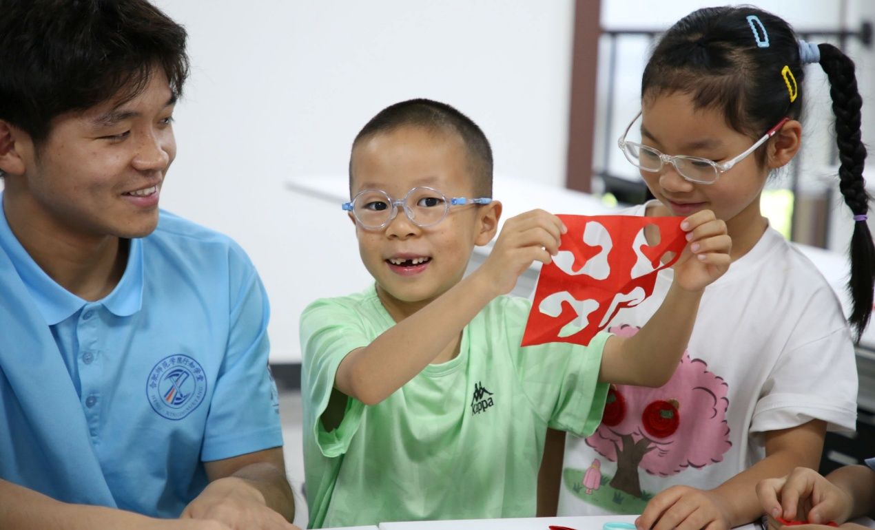 7月9日,太阳成集团122ccvip菊韵青创行知学堂内气氛热烈,一场意义非凡的非遗美术课程在此成功举办。10位小先生带领30名小学员共同参与了剪纸和京剧发饰扭扭棒非遗课程,这犹如一颗璀璨的文化火种,为传承和弘扬中华优秀传统文化注入了新的活力。