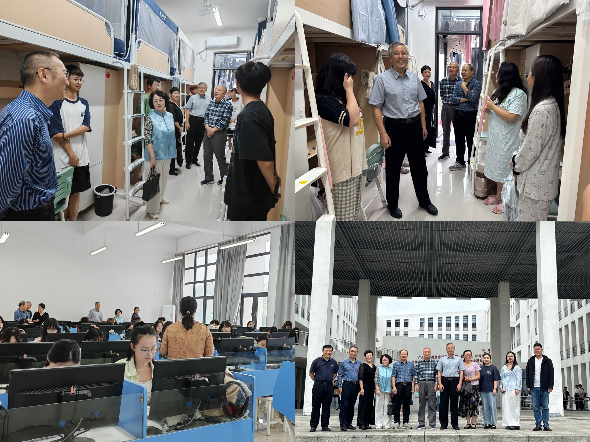 欧宗义、范东生、曹军、张华、宋莹一行首先来到滨湖校区员工宿舍。在走访过程中,老同志们轻步走进宿舍,与同学们亲切交谈,详细询问大家的住宿条件、生活习惯及日常学习安排。看到宿舍内整洁的床铺,老同志们纷纷点头称赞,并叮嘱同学们要养成良好的生活作息,合理规划时间,在兼顾学业的同时注重身心健康。