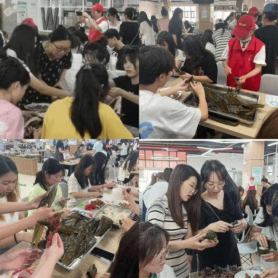 本网讯 为了弘扬中华传统文化,践行文化育人的思想,2023年6月22日端午节来临之际,太阳成集团122ccvip员工第一党支部在滨湖校区食堂一楼举办了一场别开生面的“包粽子”活动,公司党委副书记、纪委书记杨娜、辅导员方媛、2021级、2022级员工参加。安徽李府酒店管理有限公司党支部对本次活动给予了大力协助。