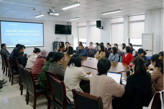 会上,方媛介绍了2022级员工的整体情况。她从员工的年龄特点、生源地构成、家庭经济情况、心理健康情况和在校学习情况等方面进行了详细分析,并向学业导师们反馈了员工在学习技能和专业发展方面的困惑和诉求。